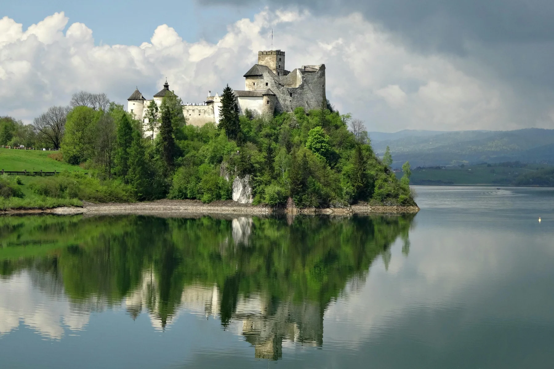 Po drugiej stronie jeziora, na skalistym cyplu, dumnie wznosi się zamek w Niedzicy określany również jako Zamek Dunajec. To jedna z najlepiej zachowanych średniowiecznych warowni w południowej Polsce. Jego budowę rozpoczęto na początku XIV wieku (w latach około 1308–1313) za panowania króla Karola Roberta z dynastii Andegawenów jako węgierskiej strażnicy granicznej, zabezpieczającej handel na szlaku Dunajec – Kraków – Budapeszt.